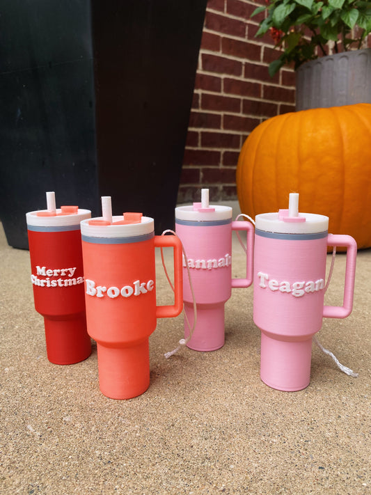 Customizable Functional Twist Off Lid Stanley Tumbler Inspired Christmas Tree Ornaments 3D Printed