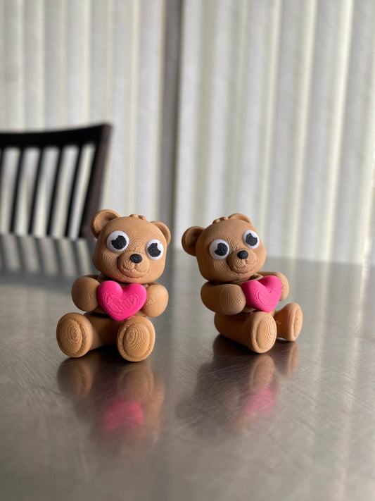 Teddy Bear Holding A Heart 3D Printed Articulated Valentines Day Cute Fidget Toys and Keychains