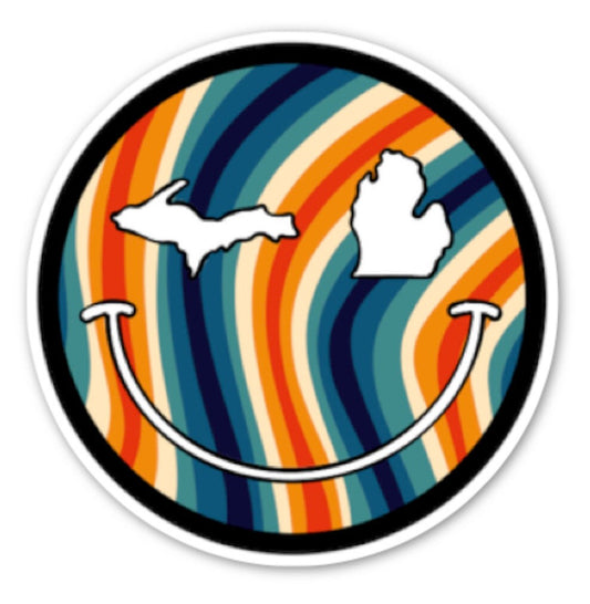 Michigan Winking Yellow Smile Face Upper Peninsula Lower Peninsula Great Lakes State Kiss-Cut Vinyl Decals