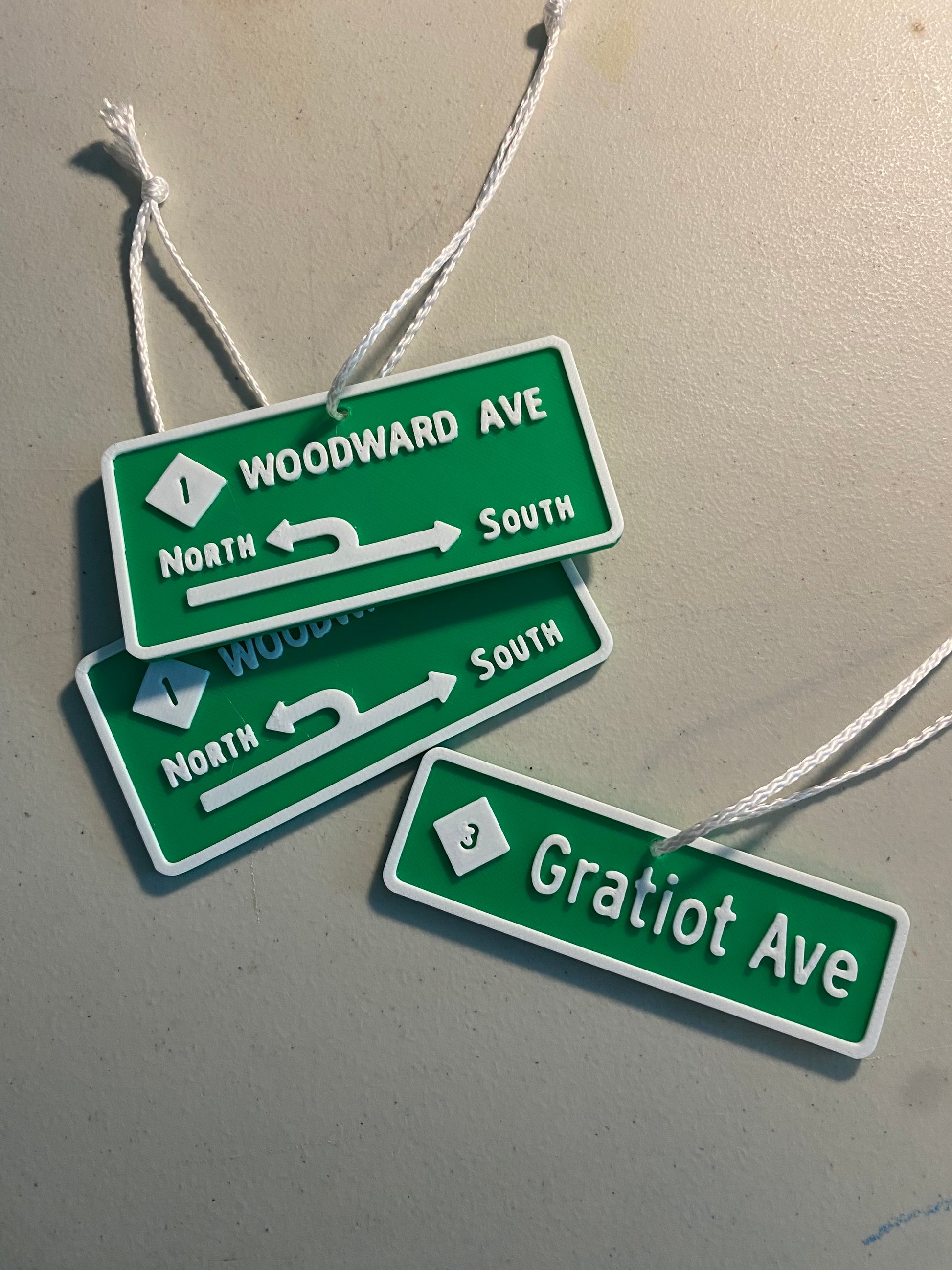 Custom 3D Printed Miniature Replica Street Signs and Exit Signs Christmas Tree Ornaments, Desk Ornaments, Rearview Mirror Hangs