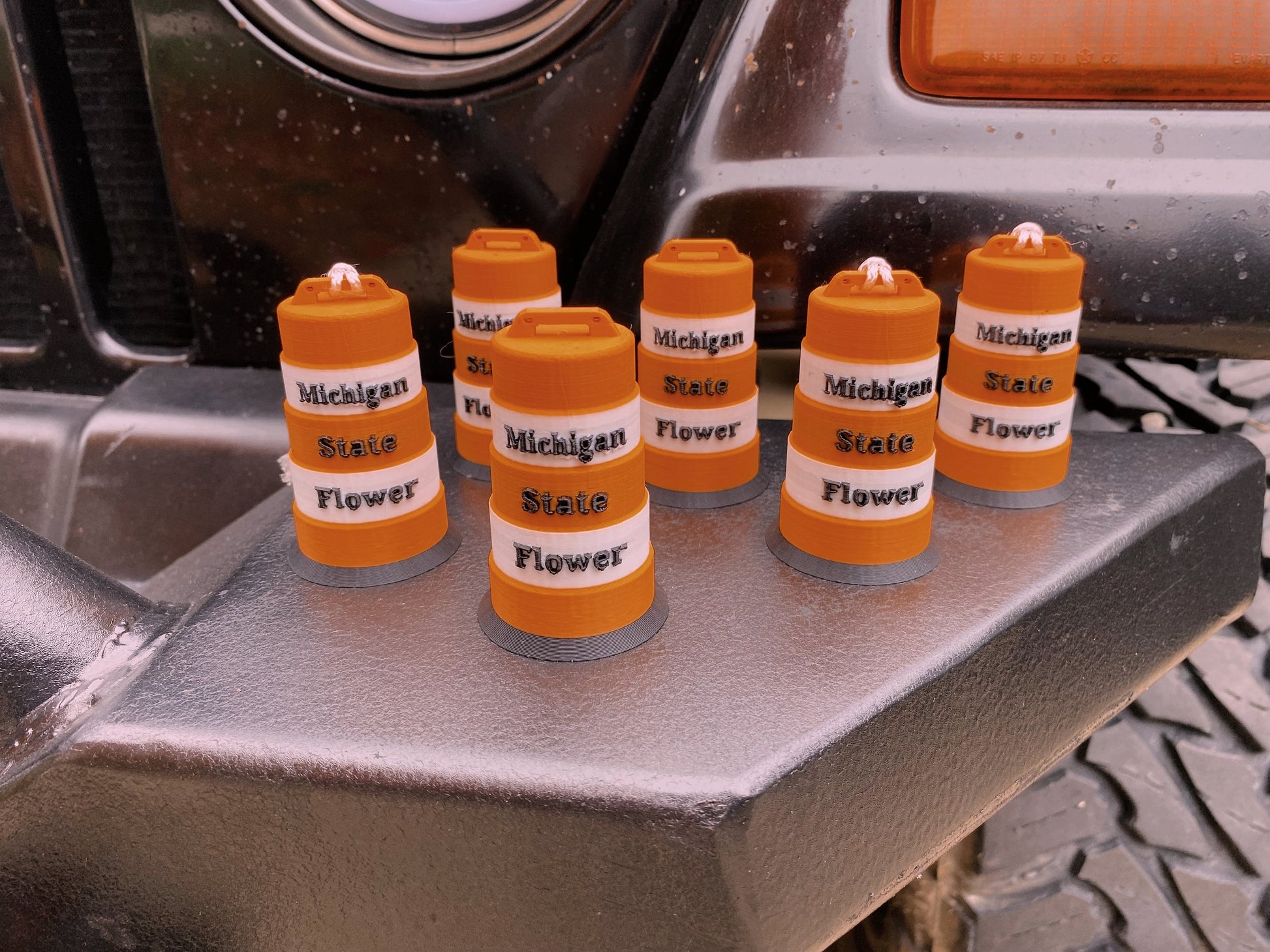 Michigan State Flower Traffic Construction Cone Barrel Drum Desk Shelf Christmas Tree Ornament